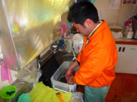 また、今回から住友林業グループのハウスクリーニング部門の責任者・スタッフも参加して活動を行いました。清水はエアコンクリーニング、椎野はトイレクリーニングを担当致しました。